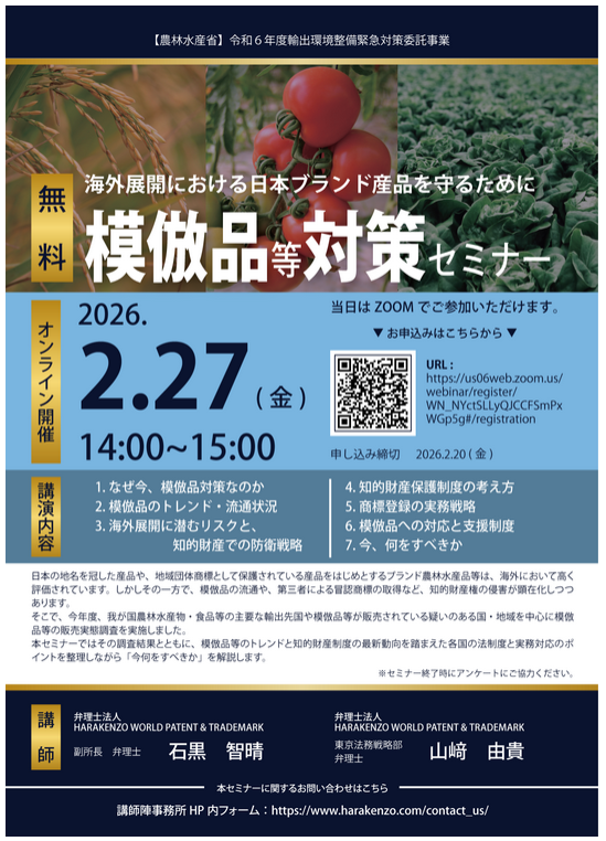 農林水産省からの委託事業として、下記セミナーを2026年2月27日(金)に開催致します。オンライン(ZOOM)で実施し参加は無料(事前登録制)となっております。2月20日までお申し込みを受け付けておりますので、当セミナーへぜひご参加を頂けますと幸いです!